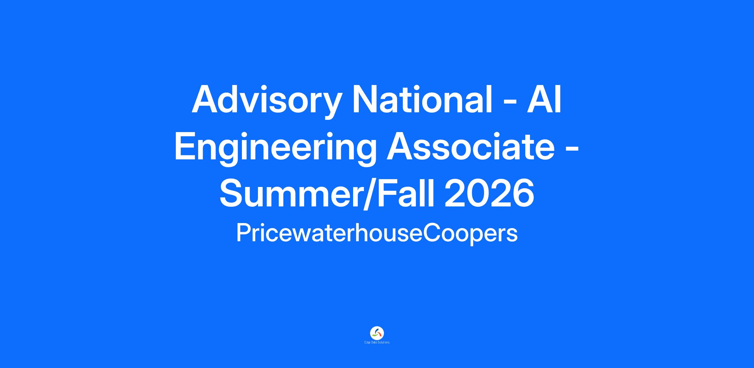 As an Advisory National - AI Engineering Associate, you will engage in a dynamic environment where you will apply your skills in data modeling, machine learning, and complex data analysis to drive impactful solutions for our clients. Your role will involve designing and implementing innovative data-driven strategies that address real-world challenges, particularly within the advisory sector. You will have the chance to work with a diverse range of industries, leveraging your knowledge to deliver meaningful insights and solutions.