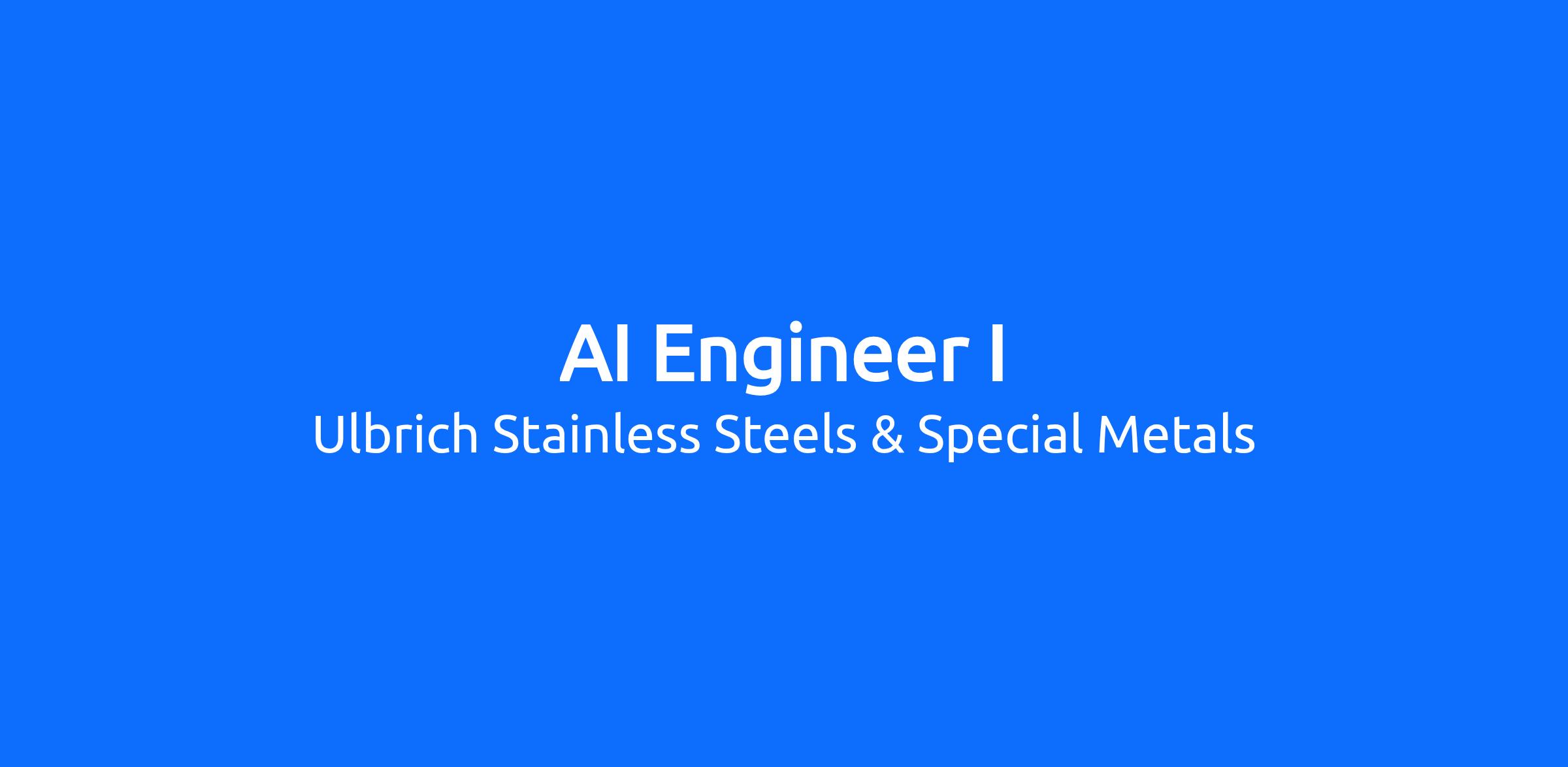 Ulbrich Stainless Steels & Special Metals is seeking a talented and driven AI Engineer to join our growing IT team at our Corporate Headquarters in North Haven, CT. In this role, you will design, develop, and deploy AI-powered solutions that enhance our products and services. You’ll work closely with employees and SME’s from across the company. This role combines software engineering, machine learning, and data science to deliver practical, production‑ready AI capabilities.