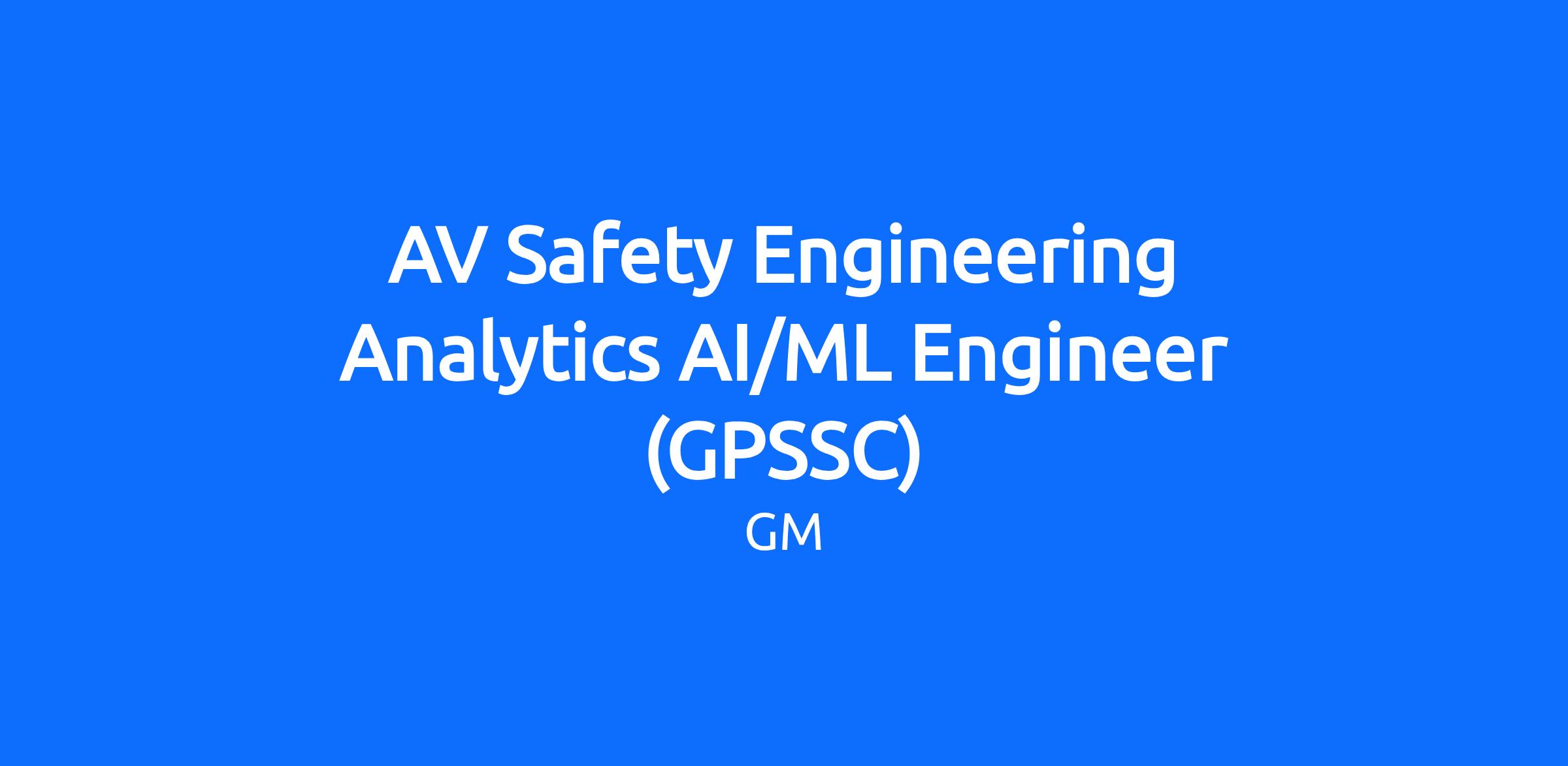 As part of the AV Safety Engineering Analytics team, you will be the subject matter expert in appropriately implementing AI/ML methods for safety assurance analytics. You will work closely with cross‑functional partners and internal customers to consider opportunities for appropriate use of AI/ML methods to organize safety related data, and evaluate driving performance. You will engage deeply with other members of the AV Safety Engineering Analytics team, and stakeholders, to understand their challenges and needs, collaborate to develop solutions using your expertise in AI/ML.