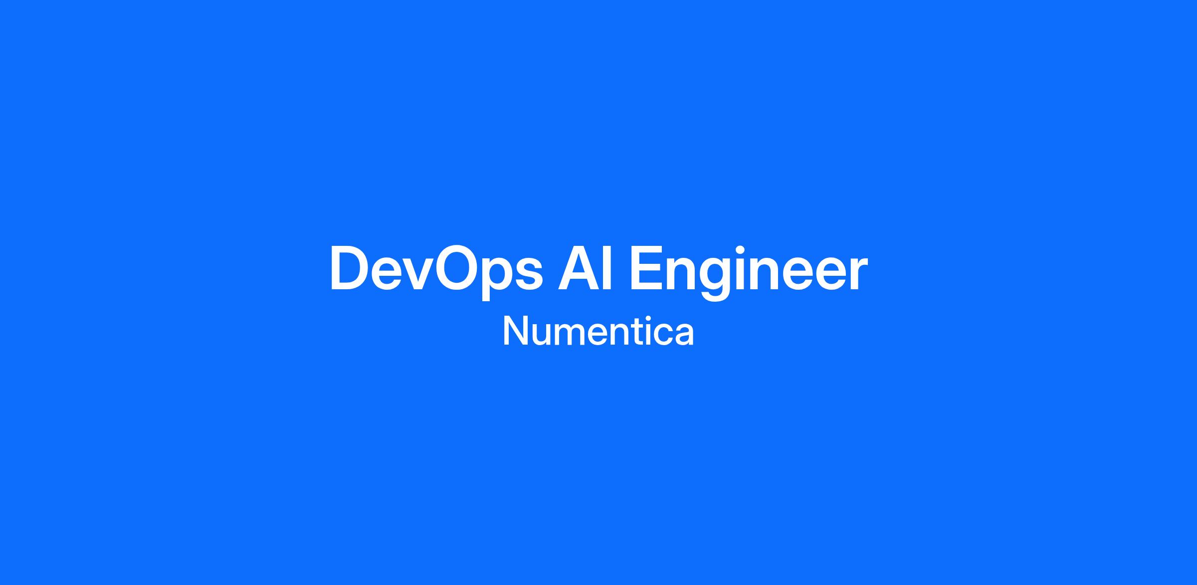 <\/html>"}}],"isMobile":false,"iframe":"true","jobType":"Contract","applyName":"Apply Now","zsoid":"39633942","FontFamily":"Verdana, Geneva, sans\-serif","jobOtherDetails":[{"fieldLabel":"Location","uitype":1,"value":"Austin, TX"},{"fieldLabel":"Industry","uitype":2,"value":"IT Services"},{"fieldLabel":"City","uitype":1,"value":"Austin"},{"fieldLabel":"State\/Province","uitype":1,"value":"Texas"},{"fieldLabel":"Zip\/Postal Code","uitype":1,"value":"78701"}],"headerName":"DevOps AI Engineer","widgetId":"253104000000311040","isJobBoard":"false","userId":"253104000000051003","attachArr":[],"customTemplate":"4","isCandidateLoginEnabled":true,"jobId":"253104000019118120","FontSize":"12","googleIndexUrl":"https:\/\/numentica.zohorecruit.com\/recruit\/ViewJob.na?digest=vdse4pa3UG.8eZ1tXmZI9l5KbuasX5UFu2tia26DtmI\-&embedsource=Google","location":"Austin","embedsource":"CareerSite","logoId":"mepjd1e421cc0c11d44a2baf2a875fb4a615d"}