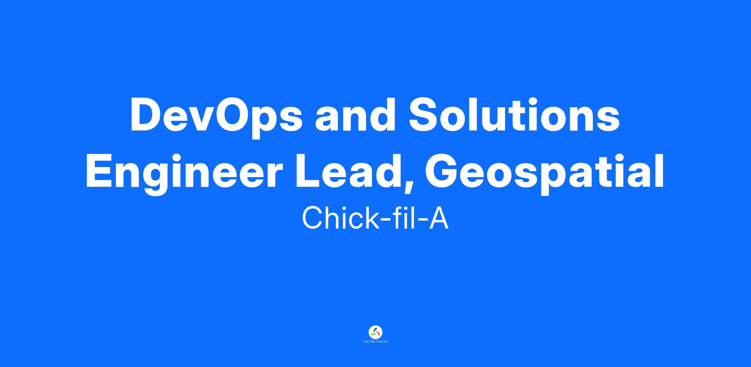 In the Chick-fil-A DevOps and Solutions Engineer Lead, Geospatial role you’ll serve as a problem solver, influencer, mentor, architect, and expert software engineer. We need you to apply the technical experience you have gained in software development and infrastructure management to the design, development, and delivery of highly engineered, complex technical products. You will both collaborate through partnerships and contribute as a member but will not be responsible for HR management duties. Instead, you’ll be able to focus on the technical aspects of delivering exceptional capabilities with a primary focus on geospatial solutions.
