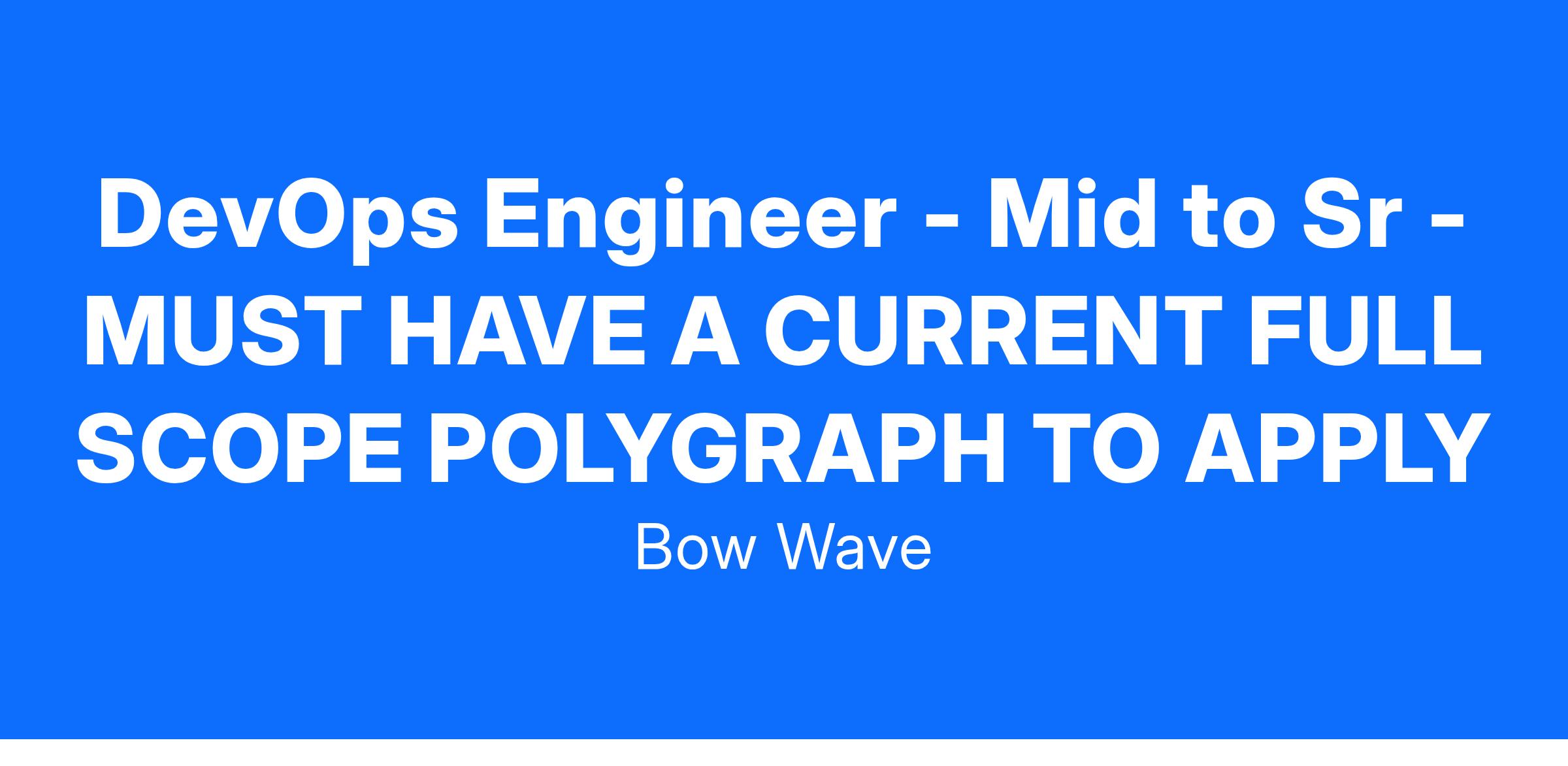 DevOps Engineer - Mid to Sr - MUST HAVE A CURRENT FULL SCOPE POLYGRAPH TO APPLY