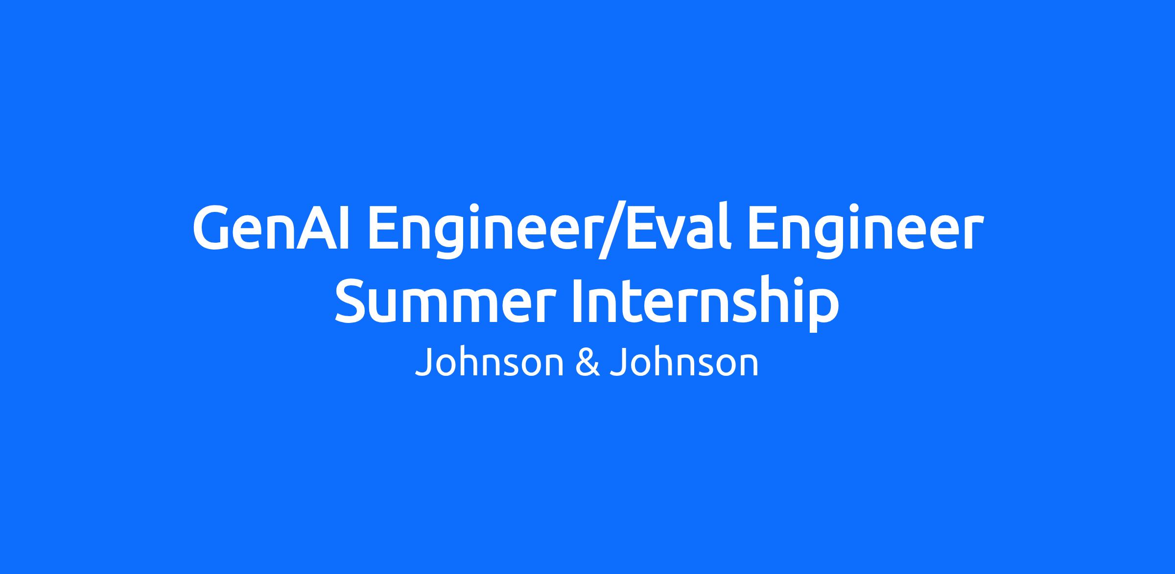 We are seeking a highly motivated GenAI/ EVAL Engineer Intern to join our AI/ML team within the Innovative Medicine division. This internship provides a valuable opportunity for college juniors and seniors passionate about applied machine learning and data engineering.