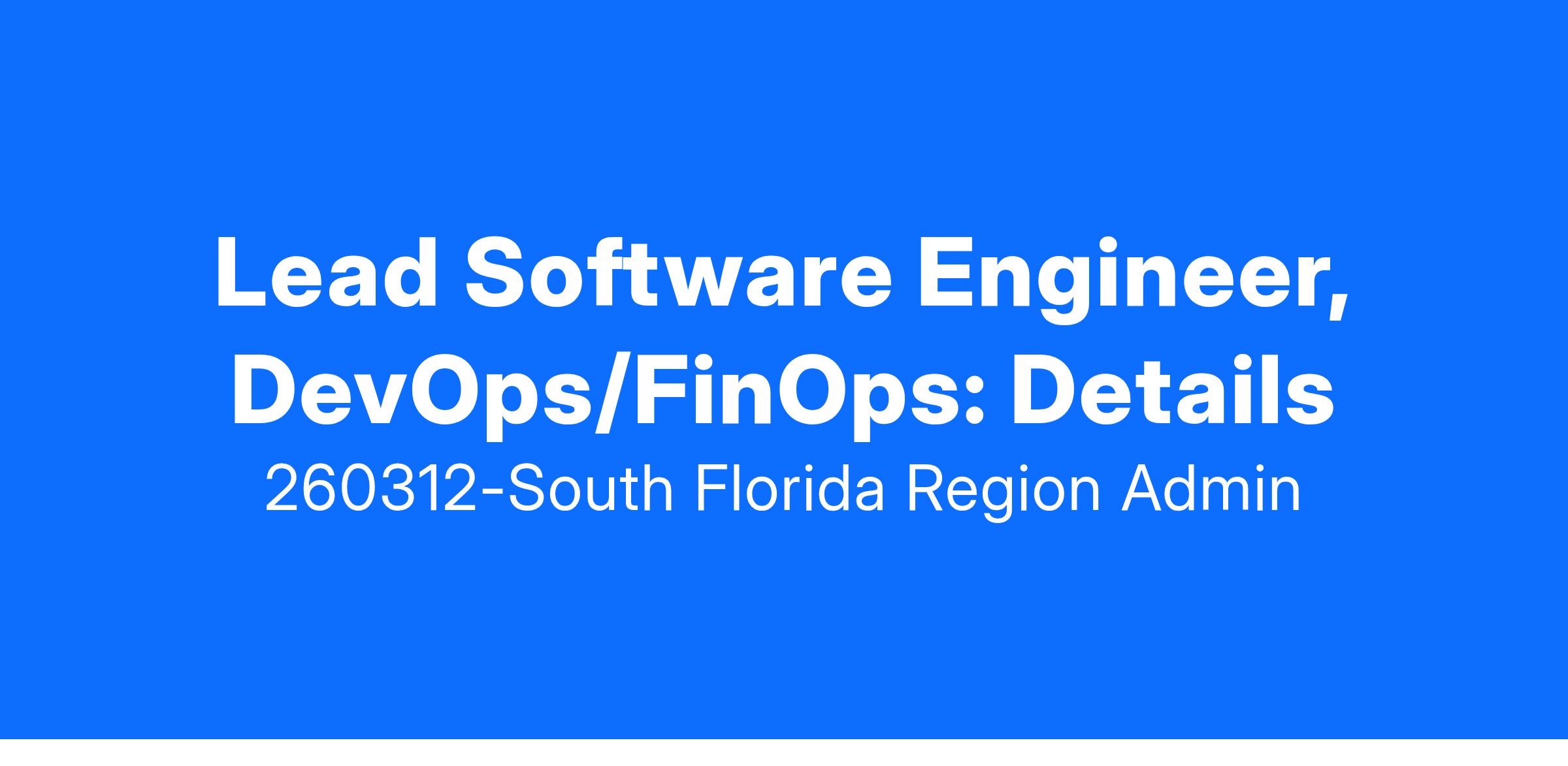 Lead Software Engineer, DevOps/FinOps: Details