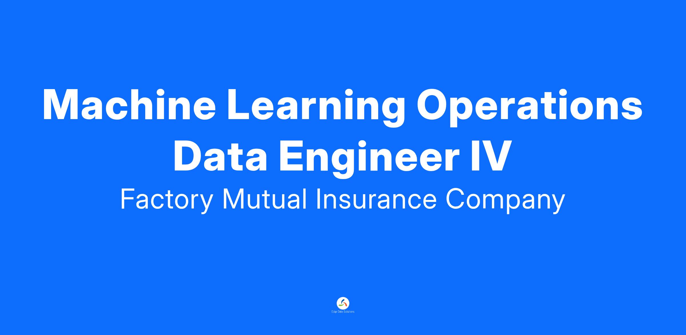 FM Global is seeking a Machine Learning Operations Data Engineer IV to join our AI/ML team to Head Machine Learning Engineering, working very closely with Data Science, Data Engineering, Subject Matter Experts and Solution Architecture teams.