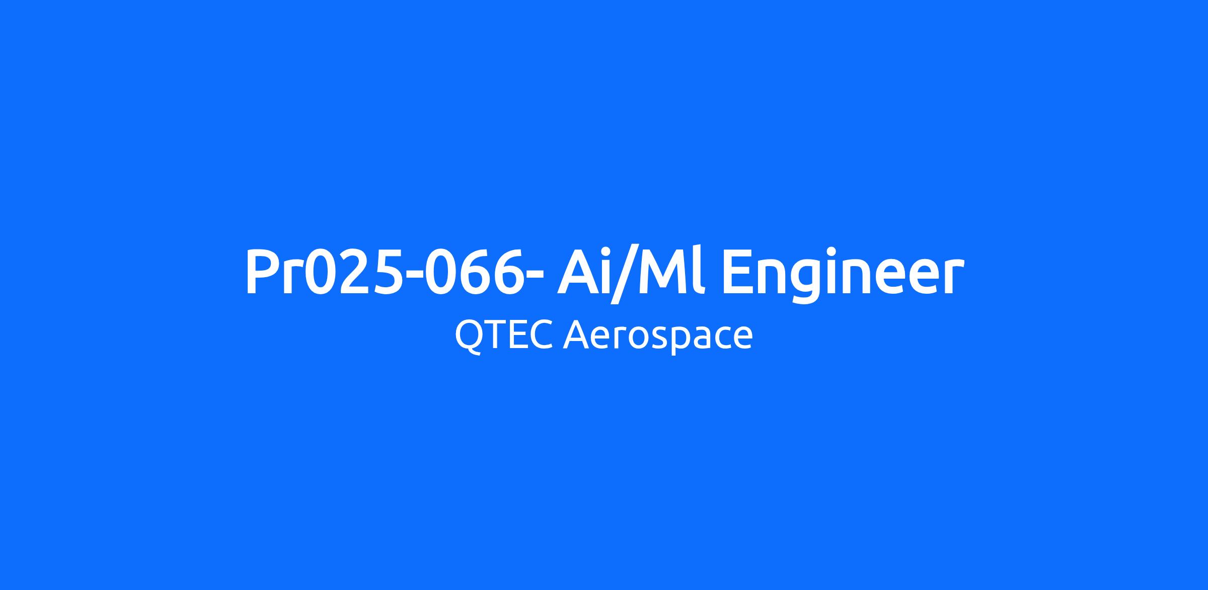 QTEC Aerospace is seeking an ARTIFICATL INTELLIGENCE (AI)/MACHINE LEARNING (ML) ENGINEER to join our team of professionals at Schriever Space Force Base in Colorado Springs, CO. The successful candidate will become part of a team of professionals representing both industry and government in support of a Missile Defense System (MDS) with a mission of protecting the United States and our allies. The successful candidate will be detail oriented, have a proven track record and a positive work ethic.