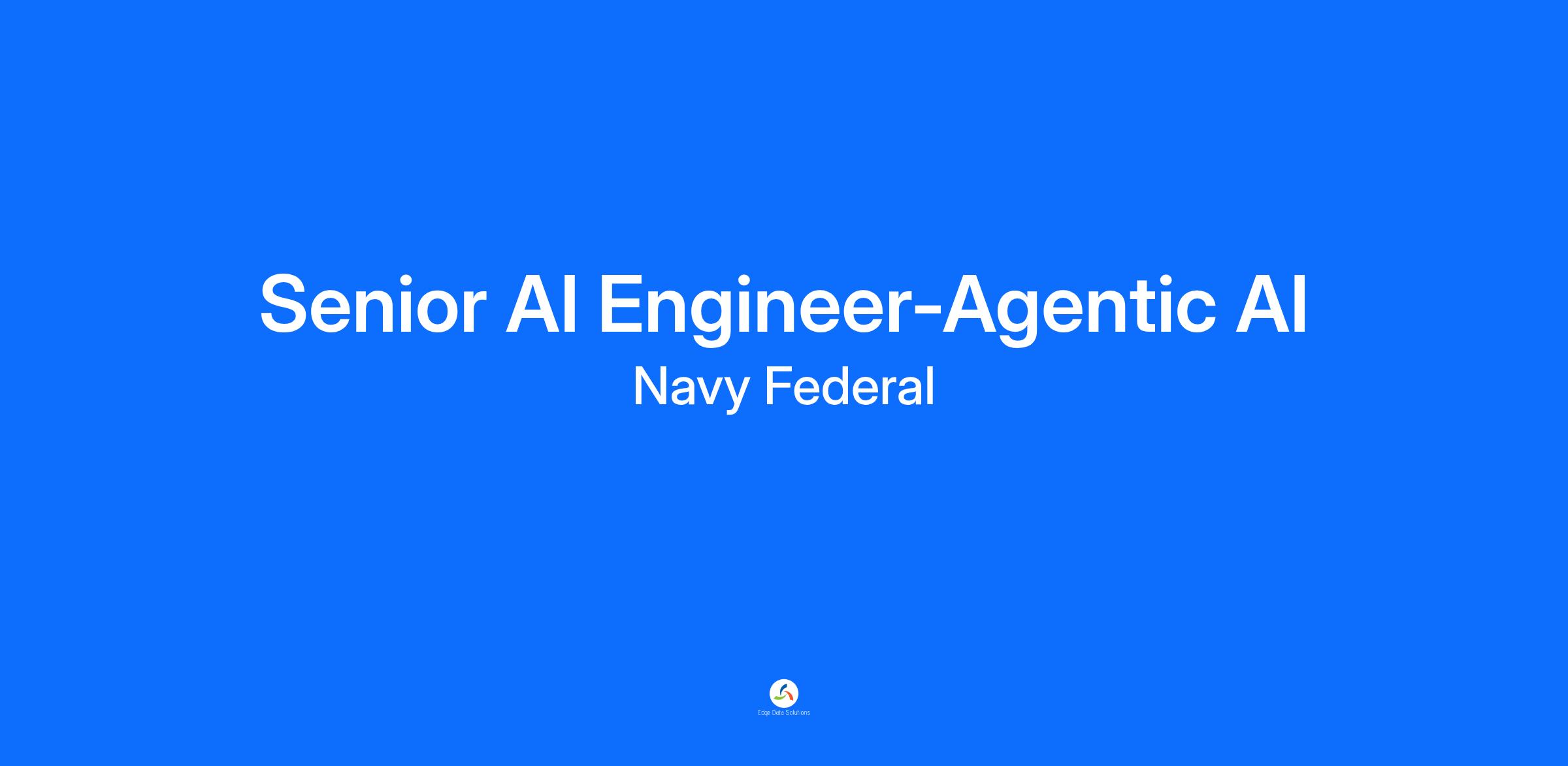 DescriptionThe AI Engineering function in Enterprise Data and Information Management (EDIM) is responsible for delivering AI solutions to drive productivity across Navy Federal Credit Union. The Sr. AI Engineer collaborates with team members in the AI Center for Enablement leading the design and implementation of cutting-edge AI solutions. The role will deliver AI solutions collaborating with stakeholders in Enterprise Technology Services (ETS) and business partners including Enterprise Architecture, Enterprise AI Strategy, and the AI Working Group.