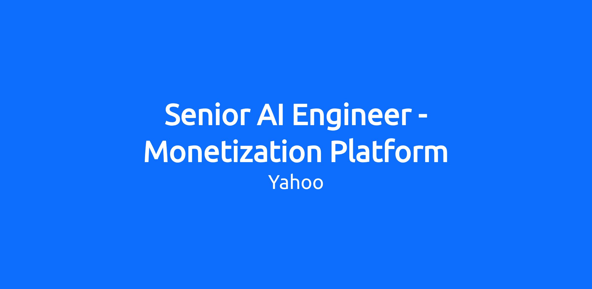 The compensation for this position ranges from $128,250.00 - $266,875.00/yr and will vary depending on factors such as your location, skills and experience.The compensation package may also include incentive compensation opportunities in the form of discretionary annual bonus or commissions. Our comprehensive benefits include healthcare, a great 401k, backup childcare, education stipends and much (much) more.Currently work for Yahoo? Please apply on our internal career site.