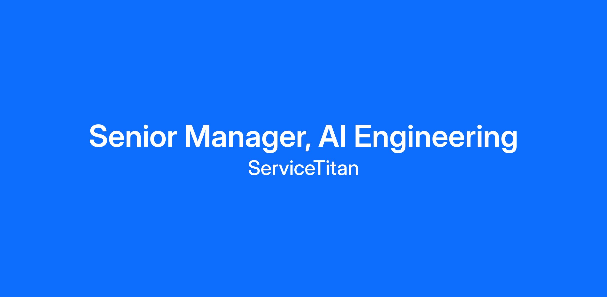 The AI engineering organization at ServiceTitan is looking for a leader who will drive the AI strategy to support our growth now and in the future. The ideal candidate will have experience with growing and managing an AI engineering team within a product company, with the capability of bringing a clear understanding of the business goals behind conversational interfaces and anchoring the team’s work in the context of the broader organizational strategy. They will work with business stakeholders across the company and support the creation of a global Conversational AI competency.