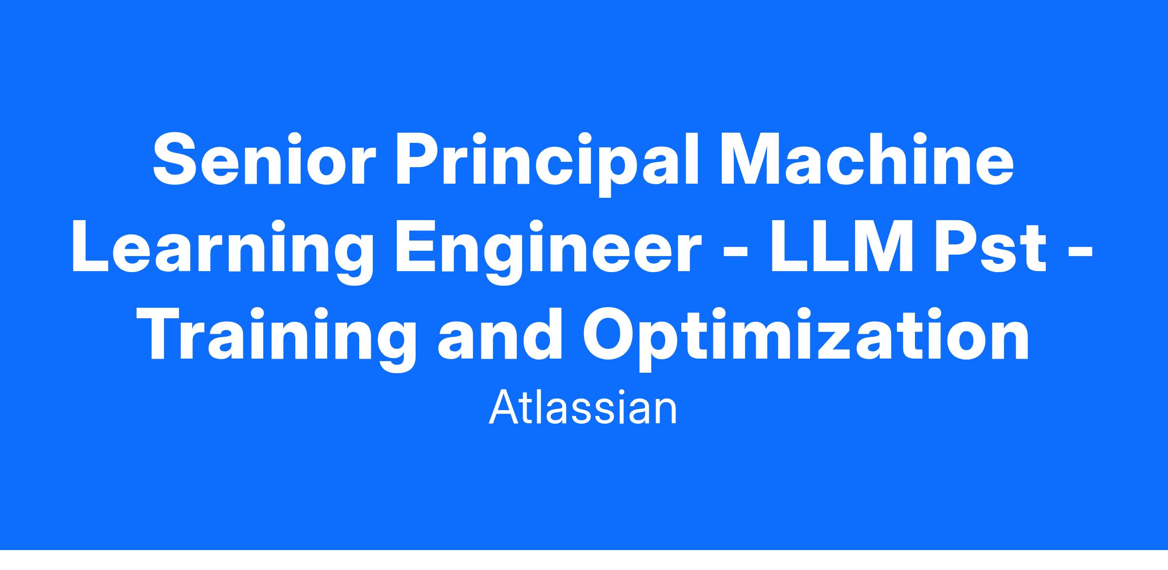 Atlassian is a global leader in team collaboration and productivity software, empowering teams to unleash their potential and achieve remarkable results. Our suite of tools, including Jira, Confluence, Trello, Bitbucket, and Rovo, is trusted by millions of users worldwide to plan, track, and manage their work effectively. At Atlassian, we are dedicated to building innovative tools and technologies that drive the future of work. Weβre seeking a highly skilled and experienced Senior Principle Machine Learning Engineer to propel our efforts in Large Language Model (LLM) post-training and optimization, shaping the future of intelligent, team-centric solutions.
