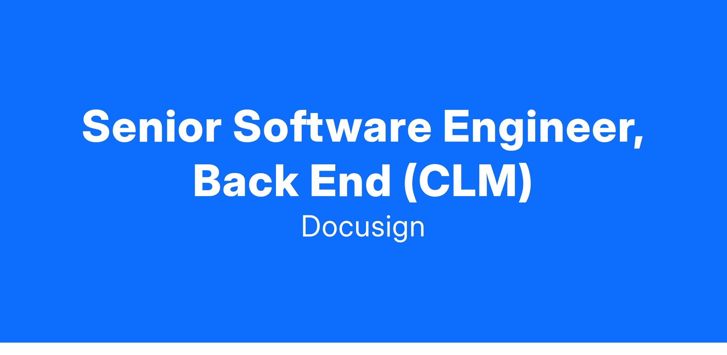Docusign is looking for a highly motivated Senior Software Engineer, Backend to join our CLM team. The Software Engineer will execute on all aspects of the software development lifecycle including design, development, testing, deployment, and maintenance of the e-commerce application. You enjoy fast-paced entrepreneurial environments where you can solve difficult problems using current technologies and tools. You collaborate well with other team members when brainstorming, designing, and implementing new solutions. You enjoy helping the team succeed by thinking about ways to improve processes, suggesting ways to make the team more effective, mentoring and modeling engineering best practices.