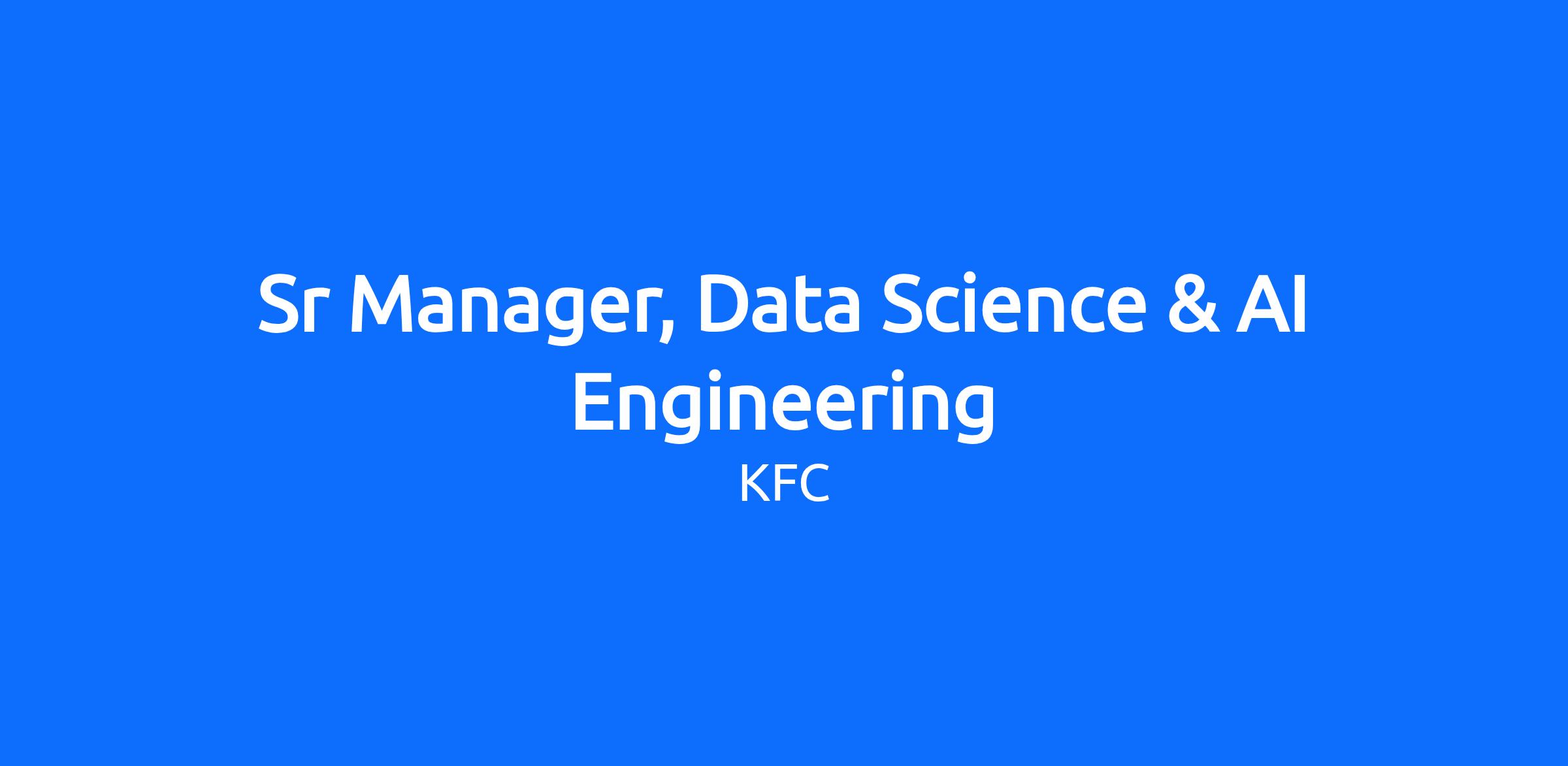 DescriptionYum Crave AI is seeking a Senior Manager, Data Science & AI Engineering to lead and scale our hybrid team of Data Scientists and AI Engineers across traditional ML and next-generation AI systems. This individual will oversee workstreams that span forecasting, personalization, experimentation, and intelligent agent development using both structured data and foundation models (LLMs, VLMs, etc.)
