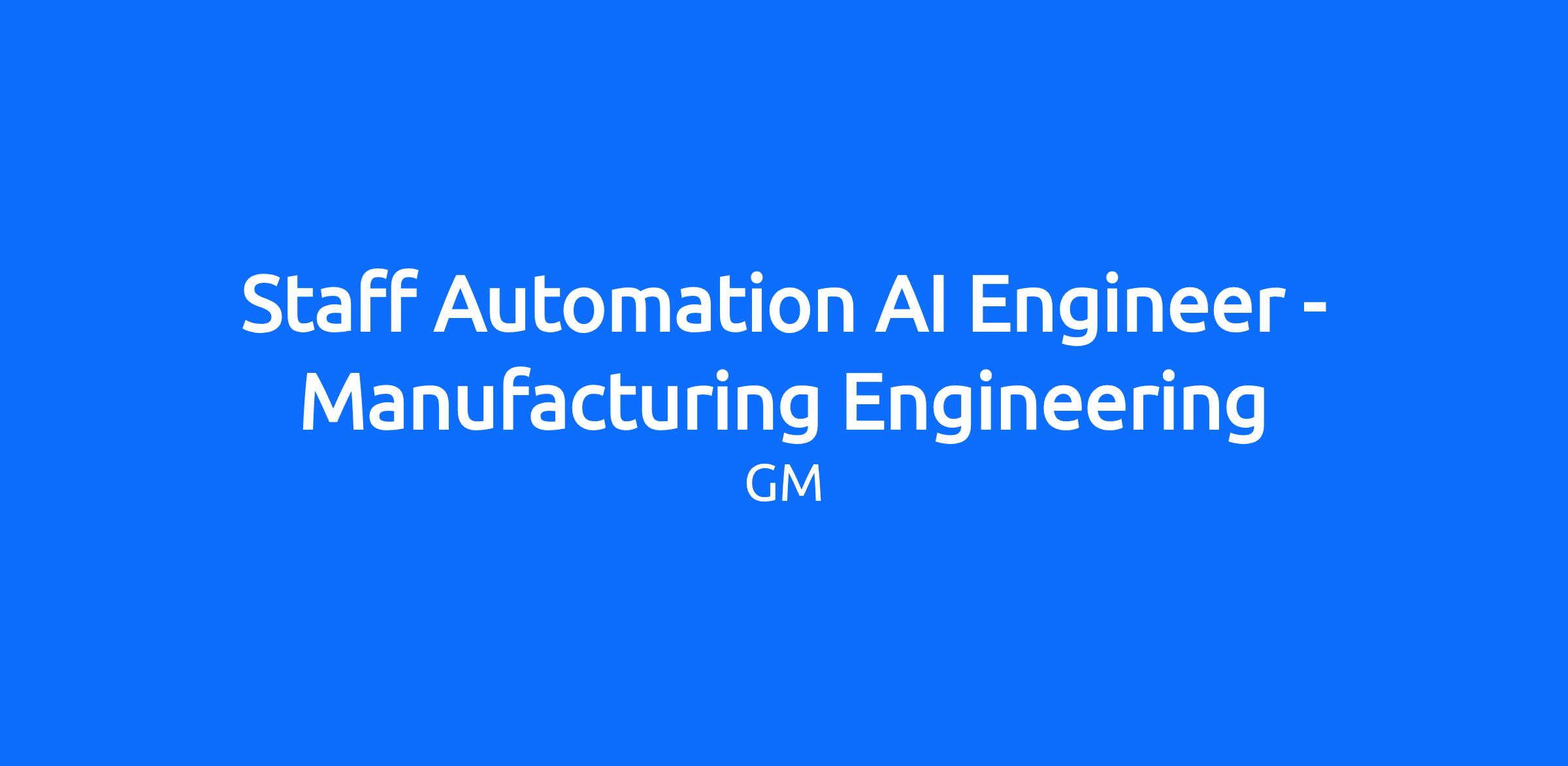 General Motors is seeking an experienced Automation AI Staff Engineer with deep expertise in manufacturing systems and production AI to drive the next generation of intelligent manufacturing solutions. In this role, you will be responsible for designing, building, and deploying advanced AI/ML systems specifically tailored for manufacturing operations. You will leverage Domain-Specific LoRA fine-tuning, multi-modal AI models, and enterprise-grade infrastructure to solve complex manufacturing challenges across GM's global production facilities. This role requires hands-on technical execution combined with the ability to architect scalable, production-ready AI solutions that directly impact manufacturing efficiency, quality, and innovation.