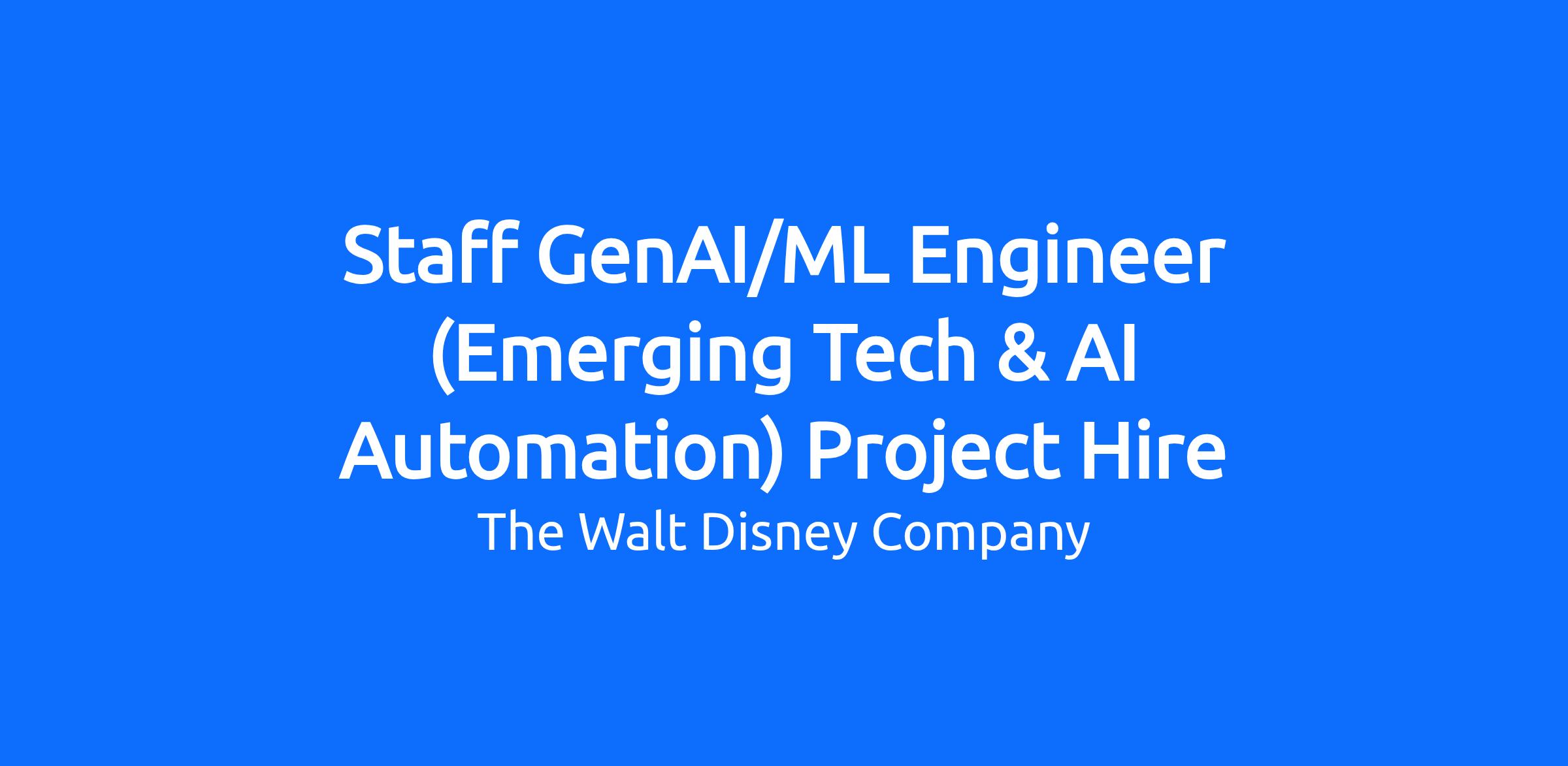 Staff GenAI/ML Engineer (Emerging Tech & AI Automation) Project HireReq ID: